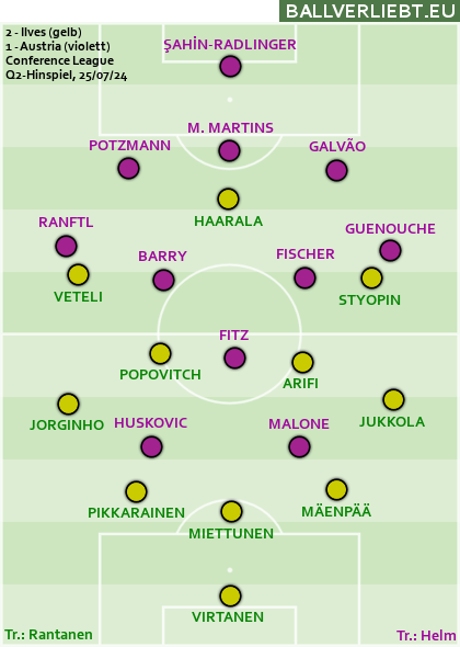 Gegenleitner, der nur die A-Lizenz besitzt, bekam mit Stephan Helm danach einen neuen Chef und die Austria mit Ilves Tampere einen sicher nicht übermächtigen Auftakt-Gegner zugelost. Die Finnen befanden sich Ende Juli in einem Vierkampf um den Titel (am Ende wurde Ilves Zweiter) und sie agierten im Hinspiel durchaus selbstbewusst. Nach dem Führungstreffer (51.) hatten sie das Spiel sogar zunehmend besser im Griff und das 2:0 durch den früheren St.-Pölten-Stürmer Riski (88.) war folgerichtig. Infolge eines Eckballs verkürzte Galvão zumindest noch auf 1:2.