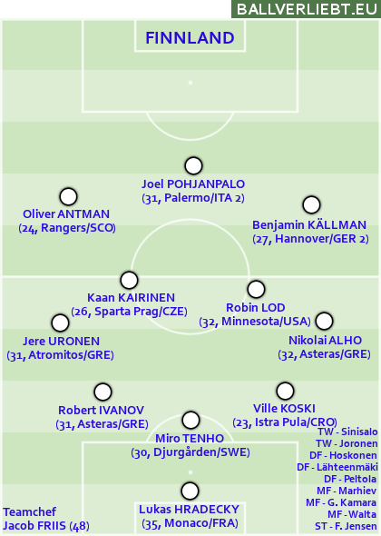 Gegen Polen gewinnen, gegen Malta verlieren: Finnland ist der Inbegriff des Teams aus der breiten, qualitativ mäßigen Mittelklasse Europas. Eine schwache heimische Liga, viele Spieler versuchen ihr Glück bei quer über die Welt verstreuten Vereinen, vereinzelt kommen auch wirklich gute Spieler heraus, aber eine nachhaltige Positiv-Entwicklung auf breiter Basis ist nicht drin. Das ist gerade in Finnland aber erstaunlich generell so: Bis auf das Eishockey-Team sind die Finnen selbst in klassisch-finnischen Disziplinen weit ab vom Schuss. Skispringer gibt es praktisch gar keine, Langläufer nur vereinzelt, Leichtathleten wie die Speerwerfer sind keine Weltklasse mehr.