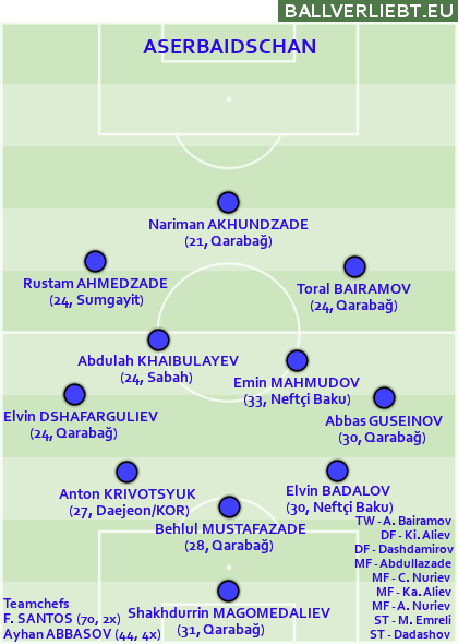 Fünf Niederlagen in den sechs Spielen in der Vierergruppe mit Frankreich, der Ukraine und Island sehen nicht schön aus, muss man als Aserbaidschan aber irgendwie einplanen. Der Grund für den dramatischen Rückfall von 2023 (als es ein 3:0 gegen Schweden gegeben hatte), war eher der desaströse Nations-League-Herbst 2024. Dort stieg man sang- und klanglos hinter Estland ab. Der relativ finanzkräftigen Liga und dem Kurzzeit-Engagement von Portugals Titel-Trainer Fernando Santos zum Trotz wartet man in Baku seit zwei Jahren auf einen Pflichtspiel-Sieg.