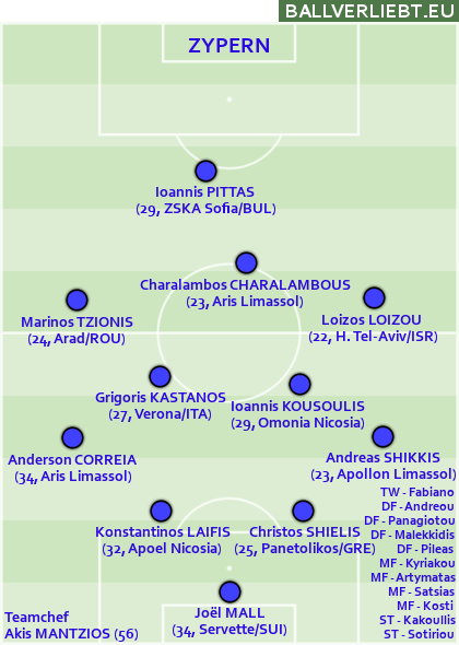 Ein defensiv ausgesprochen zäher und widerstandfähiger, im Vorwärtsgang aber zumeist recht harmloser Gegner war Zypern. Es gab dennoch zwei 2:2-Remis gegen Rumänien und Bosnien und man machte Österreich das Leben zweimal ziemlich schwer. Das war schon ein Schritt nach vorne nach den schwachen letzten Quali-Durchgängen, aber ein großer Sprung scheint weiterhin nicht möglich: Die eigene Liga ist von mittelguten Spaniern und Brasilianern geflutet, für eigene Kicker bleibt da kaum Platz.