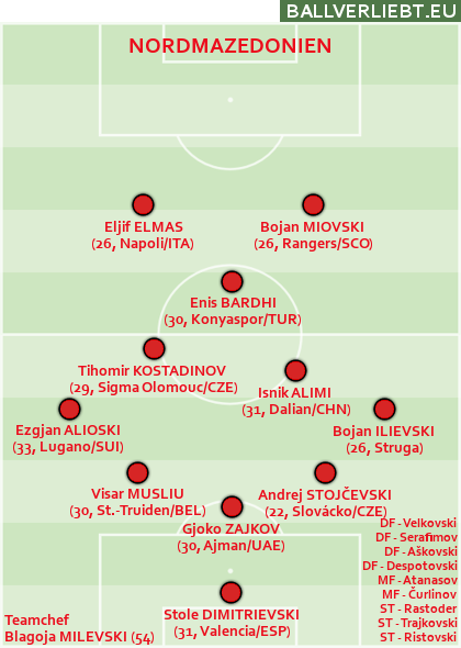 Eigentlich, nimmt man das zur Verfügung stehende Personal zum Maßstab, dürften die Nordmazedonier nicht auch diesmal eine starke Qualifikation gespielt haben. Das haben sie aber. Man ging als Gruppenzweiter in das letzte, entscheidende Match, das man zwar verloren hat (ähem, 1:7 im direkten Duell gegen Wales), ob des Gruppensiegs im C-Zug der Nations League letztes Jahr ist der EM-Teilnehmer von 2021 aber immerhin noch im Playoff mit von der Partie. Sehr respektabel.