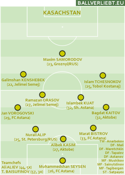 Vor zwei Jahren spielte das östlichste UEFA-Mitglied noch um eine EM-Teilnahme mit und zog nur knapp gegen Slowenien den Kürzeren. Das war aber eine Eintagsfliege, wie der krachende Abstieg aus der B-Liga der Nations League unter Stanislav Tchertchessov und auch nun die WM-Quali zeigten. Man fuhr die Pflichtsiege gegen Liechtenstein ein und knöpfte Belgien am Plastikrasen von Astana ein 1:1 ab, sonst brachte aber wenig zustande. Nach einem 0:6 in Belgien wurde auch die Besetzung der Trainerbank getauscht – einmal mehr.