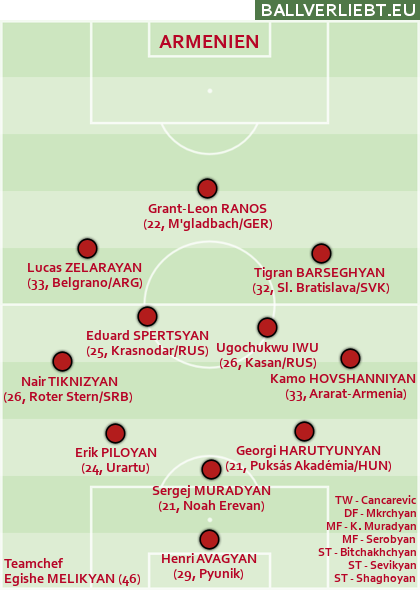 Einem recht ordentlichen Durchgang in der C-Liga der Nations-League folgte für Armenien eine harte Zeit in der Vierergruppe mit Portugal, Irland und Ungarn. Man kam zu einem Achtungserfolg gegen Irland, aber von der Klasse der Tage mit Henrikh Mkhitaryan – als man an eine EM-Teilnahme anklopfte – ist die Kaukasus-Republik schon ein schönes Stück entfernt, einen Spieler von auch nur annähernder internationaler Relevanz hat Armenien nicht zu bieten.