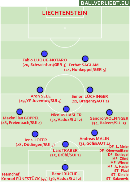 Apropos Bregenz, beim aktuellen Zweitliga-Letzten spielt auch Simon Lüchinger und damit gehört er im Kader von Liechtenstein schon deutlich zu den höherklassigen. Die Bilanz von 0:31 Toren und wie schon vor zwei Jahren null Punkten ist sehr ernüchternd und letztes Jahr in der Nations League hat die Truppe beide Matches gegen San Marino verloren. Vor 14 Jahren hat Liechtenstein als 48. im europäischen Ranking immerhin fünf Teams hinter sich gelassen. Setzt sich der aktuelle Trend fort, hängt am Rheinpark bald die rote Laterne.