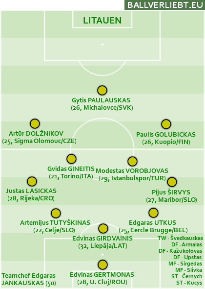 Im Basketball gehört Litauen als ehemaliger Europameister und mehrfacher Olympia-Medaillist zur erweiterten Weltspitze, im Fußball hat man in seiner ganzen Geschichte kaum mehr als eine Handvoll Spieler von internationalem Format hervorgebracht. Einer davon ist der ehemalige FC-Porto-Stürmer Edgaras Jankauskas, der seit drei Jahren mit überschaubarem Erfolg das Team verwaltet. Auffällig: Die litauische Liga ist nicht gut, aber selbst aus dieser gibt spielt niemand als Stammkraft im Nationalteam, das auf einem historischen Tiefpunkt steht und hinter Malta ins Ziel gekommen ist. Besser als das sollte der Kader dann doch sein.