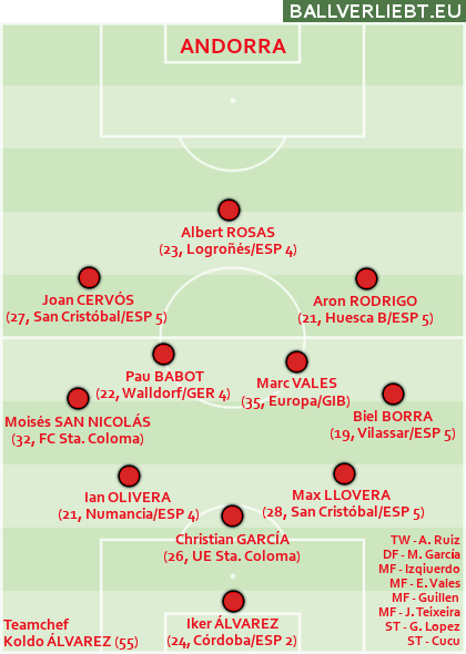 Für den Pyrenäen-Kleinstaat ist die letzte Nullrunde hingegen schon ein Jahrzehnt her und auch diesmal konnten die Mannen von Teamchef Koldo Álvarez und dessen Sohn Iker im Tor wieder anschreiben – es gab ein 2:2 in Lettland, England hielt man bei 0:1 und 0:2, sehr respektabel das alles. Vor allem, wenn man bedenkt, dass auch hier so gut wie alle im deutlich unterklassigen Liga-Betrieb unterwegs sind.