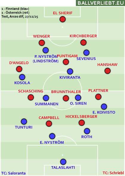 Das Spiel war durchaus aufschlussreich – in dem Sinne, dass es viele Eindrücke aus den bisherigen Spielen in diesem Jahr bestätigt hat. Finnland hatte bei der EM einen erstaunlich gepflegten Fußball gezeigt, bei dem der Ball gut zirkulierte und man die Gegner auch vorne anlief. Zu diesem Ballbesitzspiel kamen die Finninnen gegen das österreichische Pressing praktisch nie und die Versuche, selbst hoch anzupressen, löste die Hintermannschaft mit Wenger und El Sherif in der Regel auf, ohne ins Schwitzen oder gar ins Schwimmen zu kommen.