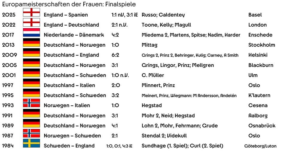 Ende Oktober geht dann die Nations League in ihr Semifinale (Frankreich trifft auf Deutschland, Spanien auf Schweden) und die Relegations-Partien finden statt, Österreich trifft dabei auf Tschechien. Im Frühjahr geht es dann weiter mit der Qualifikation für die WM 2027 in Brasilien. Auch dort werden England und Spanien wieder zu den Top-Favoriten gehören.