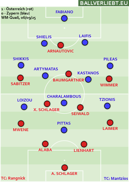 Durch das Gewühl vor dem Strafraum kam Österreich nicht durch, so brauchte es eben den Elfmeter: Shielis war Baumgartner nach dessen Torschuss eher unglücklich aus der Bewegung als bösartig mit Absicht auf den Fuß getreten, Sabitzer verwertete. Der Favorit war nun nicht mehr zum Risiko oder zum großen Vorwärtsdrang gezwungen und begnügte sich damit, seriös weiterhin die Zyprioten mit Gegenpressing in Schach zu halten. Unterhaltsam war das nicht, aber es gab die drei Pflicht-Punkte.