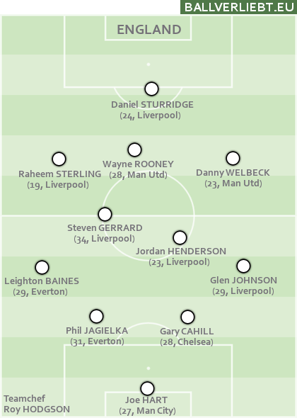 England wirkt wie in einem Umbruch, der seit vier Jahren im Gange ist und ohne wirkliche Überzeugung betrieben wird. Man will die Alten raushaben, nimmt aber dennoch Gerrard UND Lampard mit. Man ersetzt den gefühlt seit den Achtzigern gesetzten Ashley Cole mit einem Spieler, der nur vier Jahre jünger ist und trotzdem erst eine Handvoll Europacup-Einsätze hinter sich hat. Man kommt endlich vom bald greisen Rio Ferdinand weg, und stellt einen 31-Jährigen und einen 28-Jährigen vor Joe Hart hin.